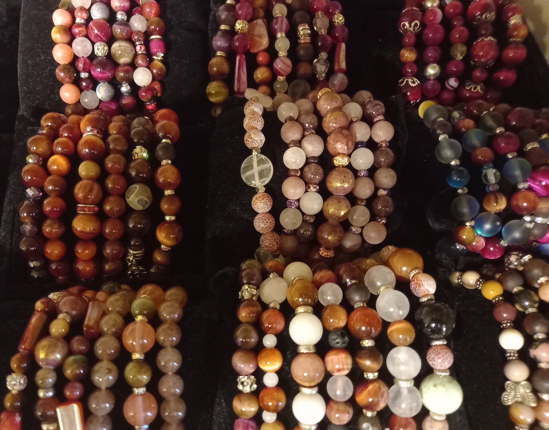 De collectie sieraden zijn grotendeels handgemaakt van edelstenen en mineralen maar wij hebben ook wat sieraden van vroeger.